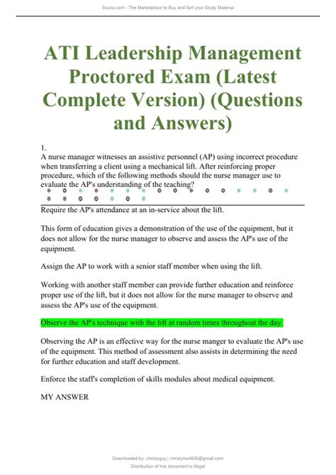 Online PDF ATI LEADERSHIP MANAGEMENT PROCTORED EXAM Kindle Editon ManyBooks